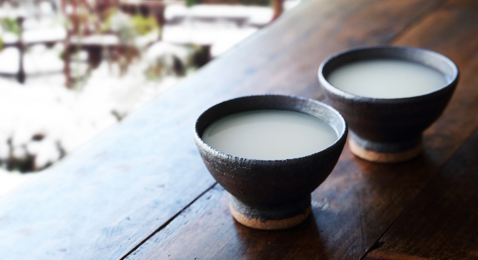 👉にごり酒の飲み方の定番。キンと冷やして、大きめの器でグイッと豪快に。