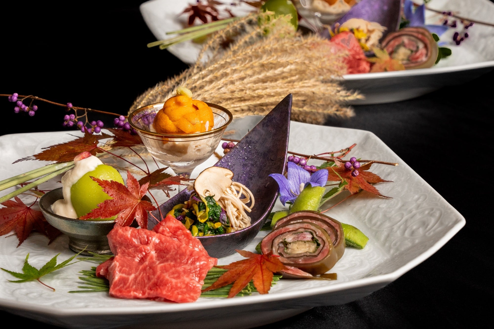 お料理は18,000円、21,000円の2つのコースを御用意。公式HPまたはお電話で期間中にご予約いただければ、開店日から11月30日まで特別価格にてお食事いただけます。