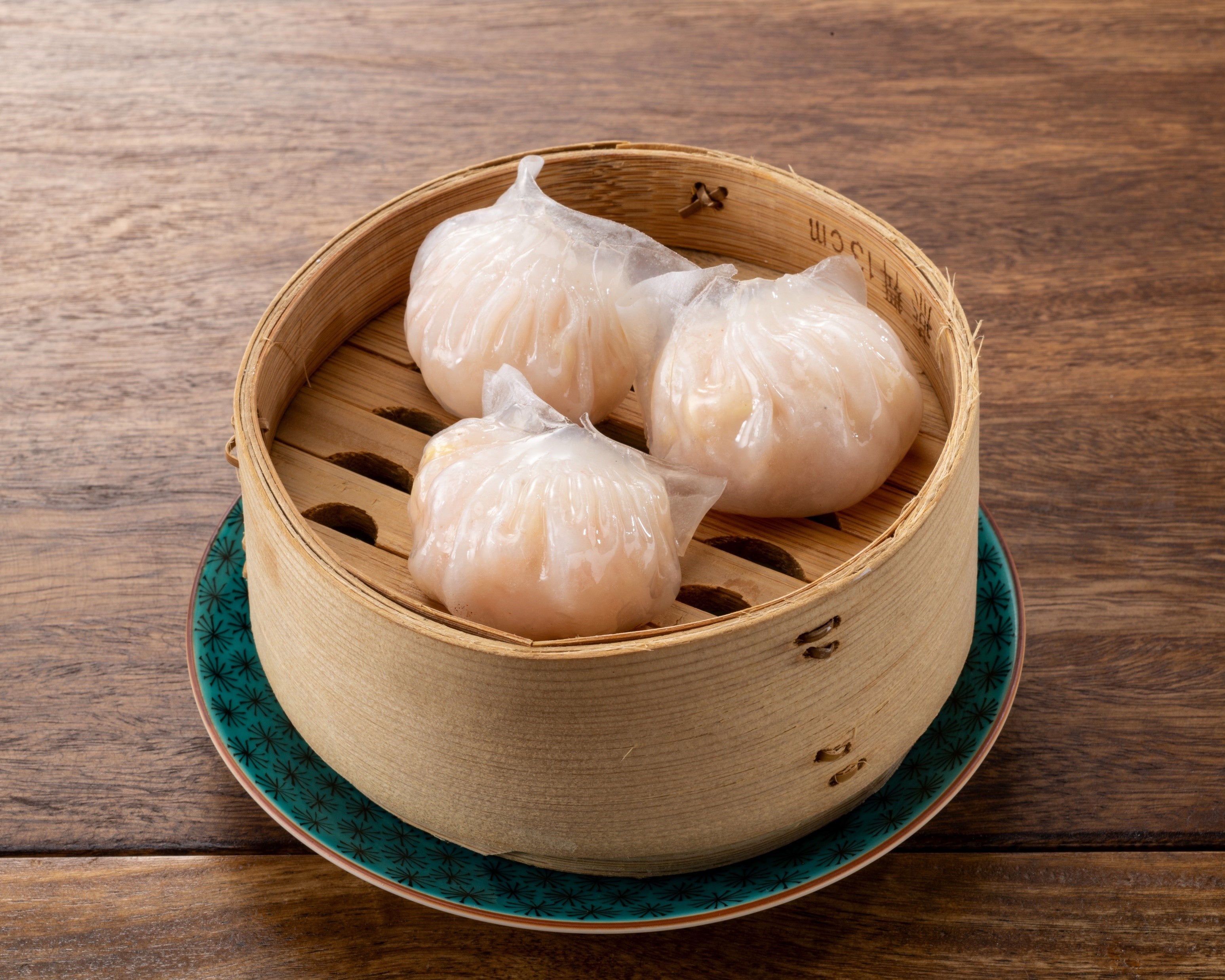 □アラカルトの点心で一番人気の「エビ蒸し餃子」
