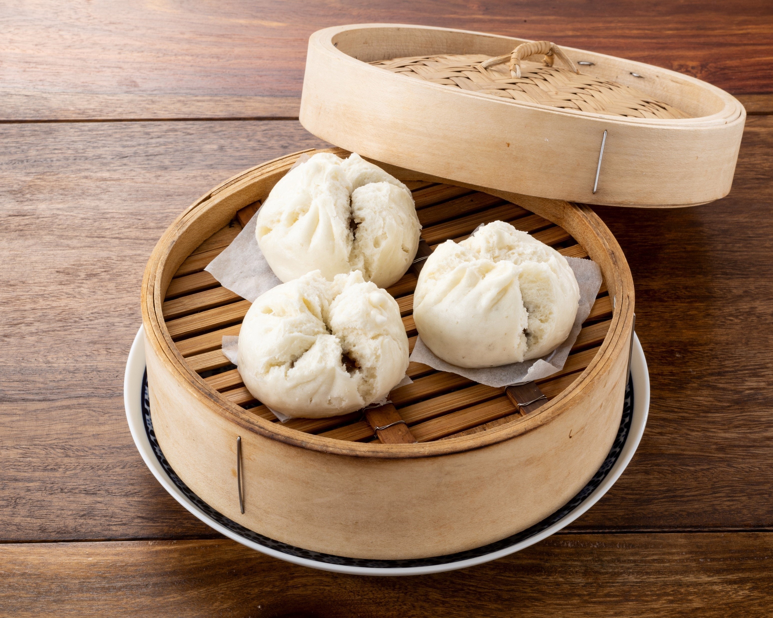 □自家製廣東叉焼の入った「チャーシュー入り蒸し饅頭」