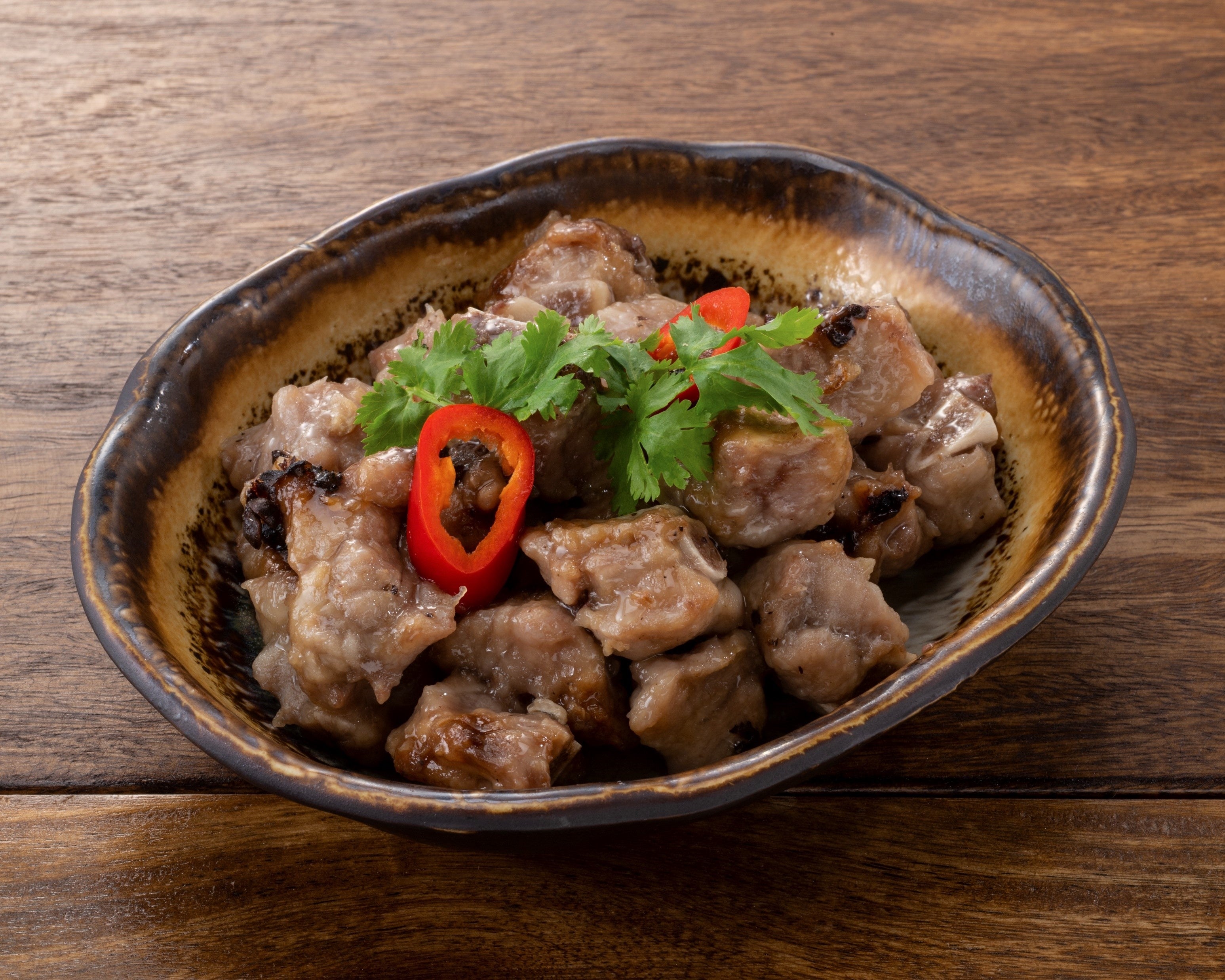 □特製の豆鼓ソースの「豚スペアリブの豆鼓蒸し」