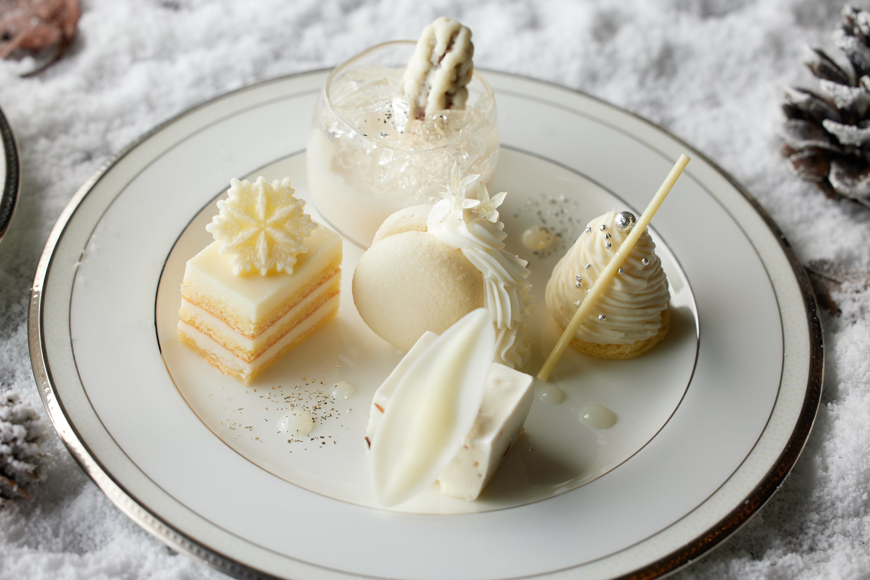 上品なホワイトカラーを基調にした幻想的な雪景色を連想させるアフタヌーンティーで、冬の優雅なティータイムをお過ごしください。