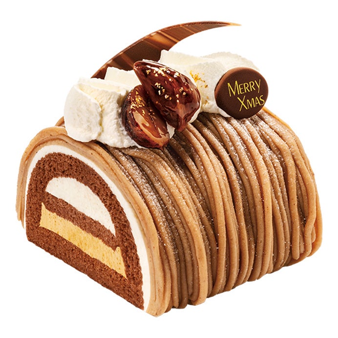 マロンクリームが一面に降りつもった、くちどけ濃厚栗のブッシュドノエルです。マロングラッセにキャラメルムース、ホイップクリームなど、中までおいしさぎっしりのグルメな聖夜のモンブランです。
