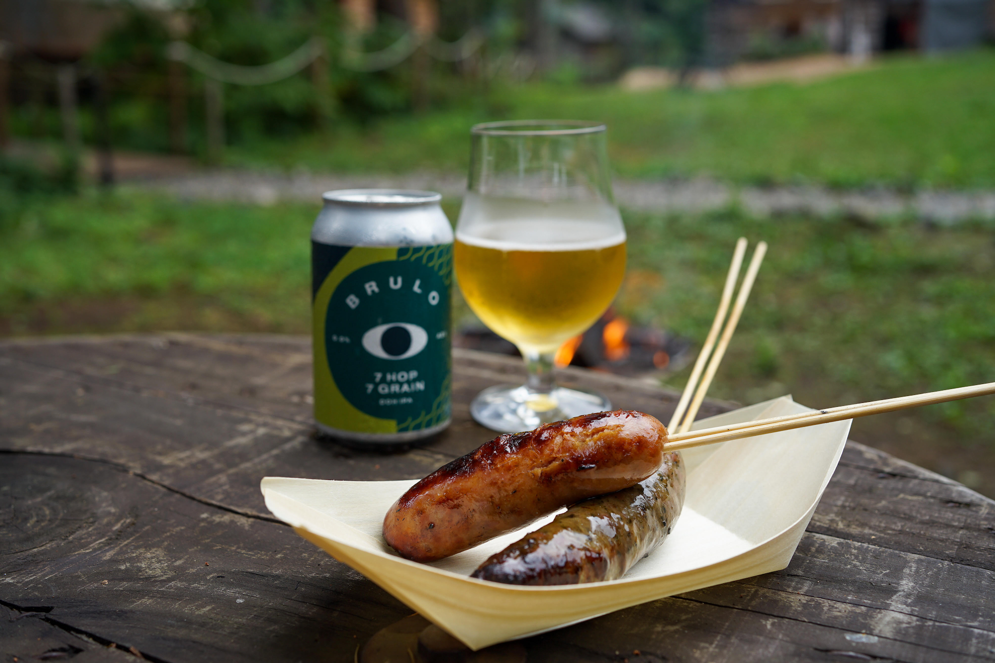 10月8日(日)に、LAMP野尻湖の各貸切サウナエリアとLAMP敷地内に焚火を用意いたします。サウナの休憩中やサウナ利用前後に、長野県の地元の食材を使ったLAMP自慢の自家製ソーセージをお買い求めの方でボイルしたソーセージを焚き火で焼いて食べる方を対象にAlldrop厳選の美味しいノンアルコールクラフトビール「BruloBeer 7 Grain / 7 Hop DDH IPA」を1本プレゼントします。