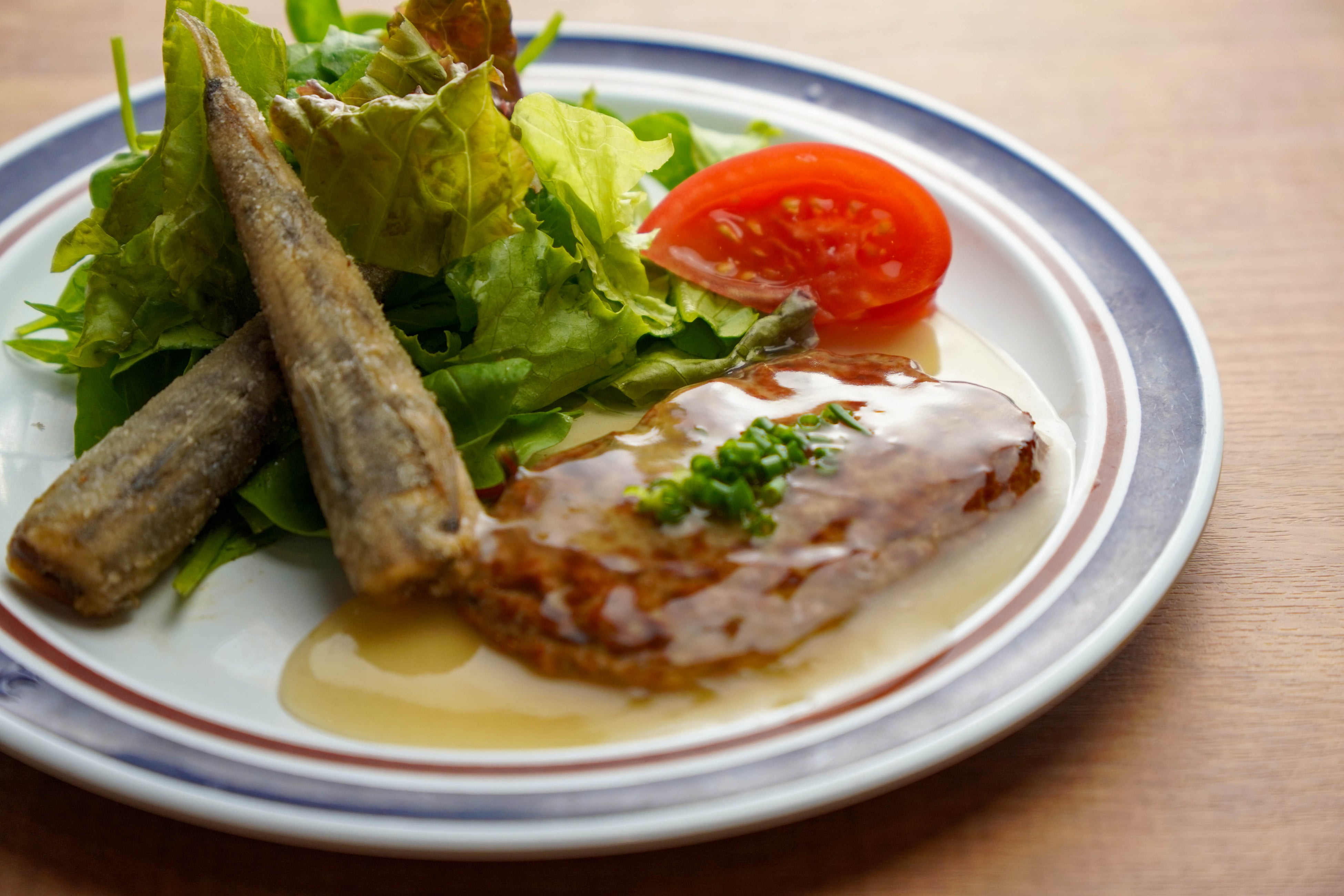 また「さんまのポーポー焼き」は、さんまをミンチ状にしてハンバーグのようにしたお料理です。焼くとたっぷり乗った脂が溶け出して火に移り「ポーポー」と燃える事から、この名が付いたと言われています。さんまの味が口いっぱいに広がり、今の季節に食べて貰いたい1品です。