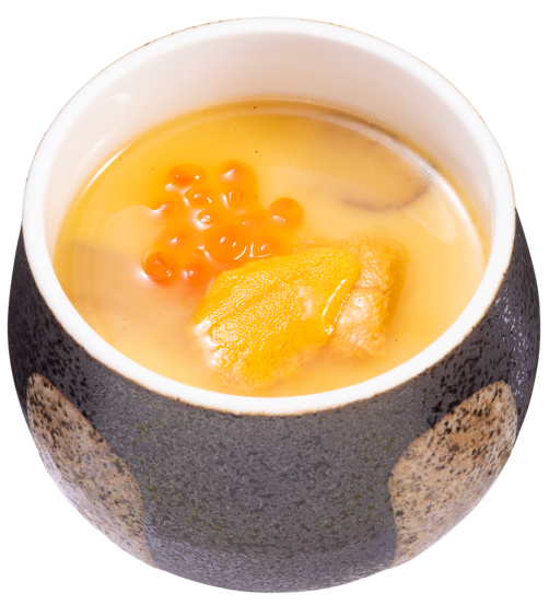 滑らかな舌触りと出汁の効いた味わいの茶碗蒸しに「新物うに」と「いくら」をのせました。