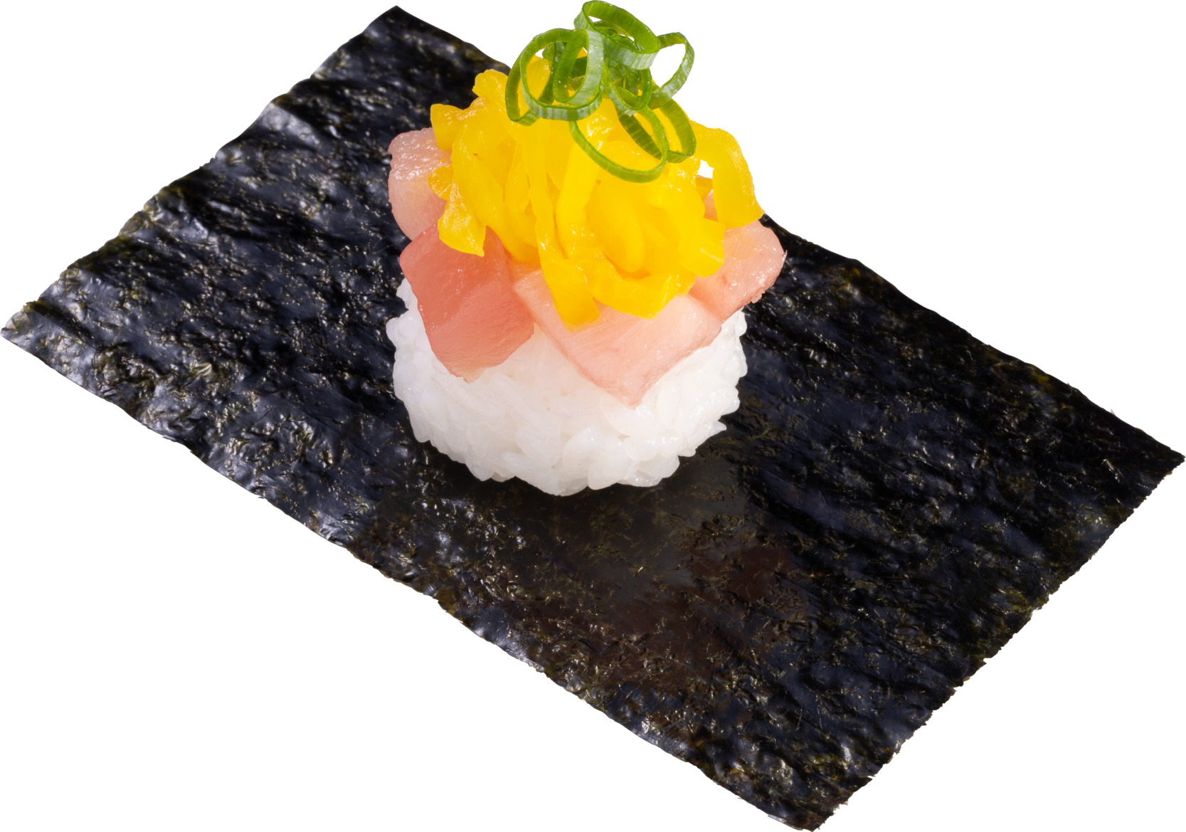 脂のりが良く、滑らかな舌触りの「とろ」と、たくあんの独特な味わいや歯ごたえが楽しめます。