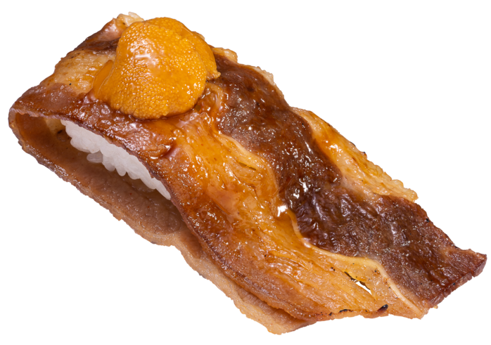 炙った大切り牛カルビの程よい脂のコクと旨みに、「新物うに」の濃厚な味わいが相性の良い一品です。