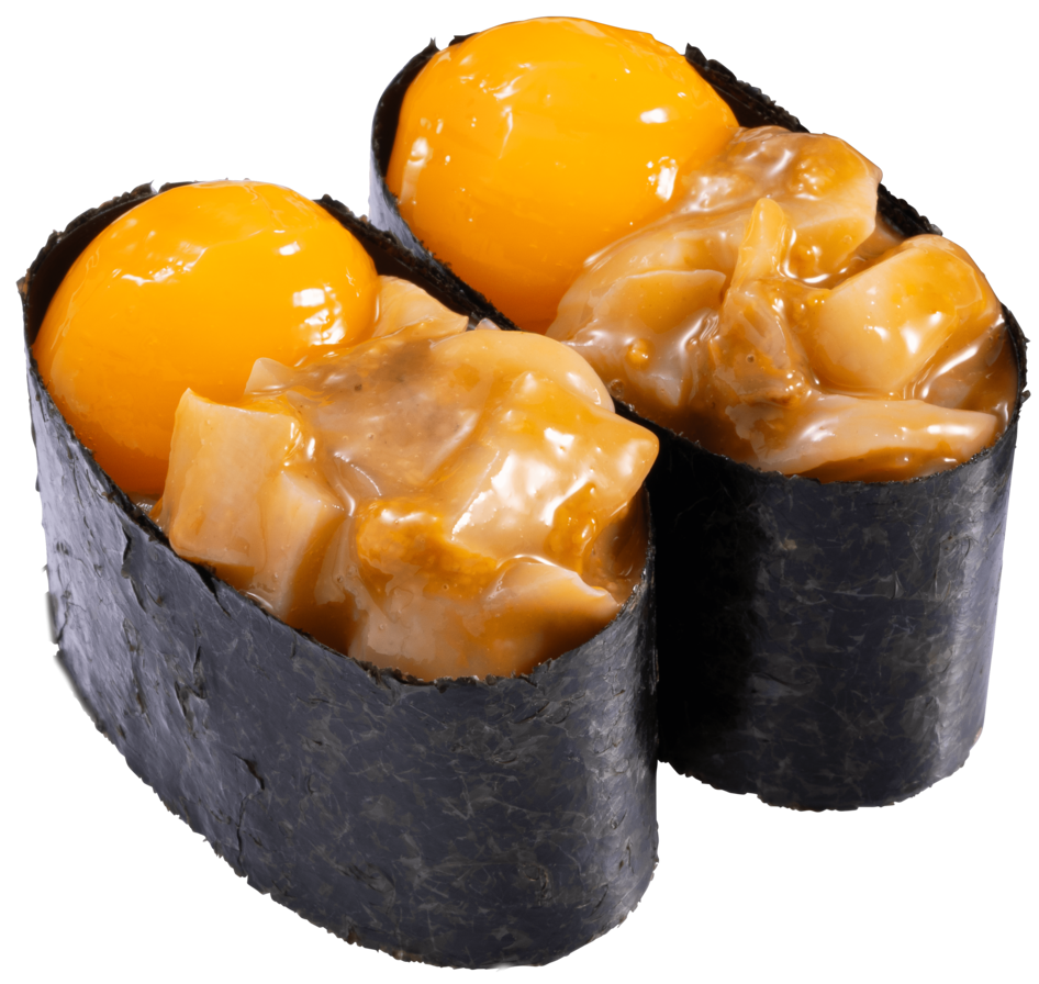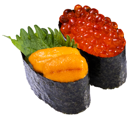 濃厚な旨みの「新物うに」と、ぷちぷち食感と旨みある「いくら」を一皿で楽しめる軍艦です。