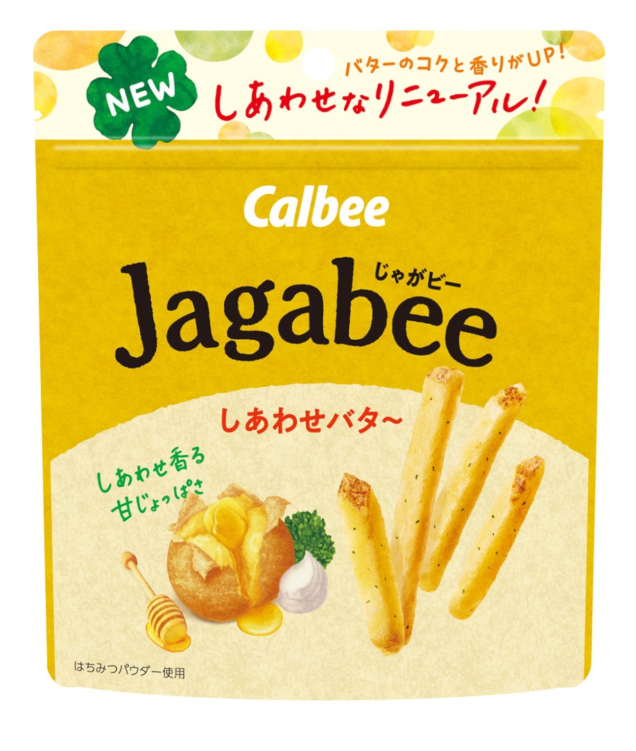 「Jagabee しあわせバタ~」は2015年に初めて期間限定で発売。「バター」「はちみつ」「マスカルポーネチーズ」「パセリ」の4つの素材を合わせた人気のフレーバーで、ほんのり甘じょっぱい美味しさが特長です。