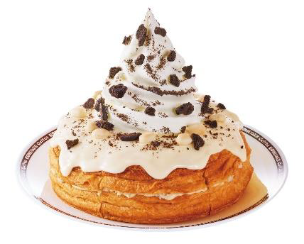 今年の新作は、北海道限定土産の「白いブラックサンダー」とのコラボレーションです!ほかほかのデニッシュに、ザクザク食感が楽しめるクッキー入りの白いブラックサンダースプレッドを挟み、ミルキーな白いブラックサンダーソースでデコレーション。ソフトクリームの上からココアクッキーとプレーンビスケットを散らしました。どこから食べても、圧倒的なミルク感を感じられる一品に仕上がりました。おいしさのあまり、雪山を直滑降で滑り降りたくなること間違いなし!
