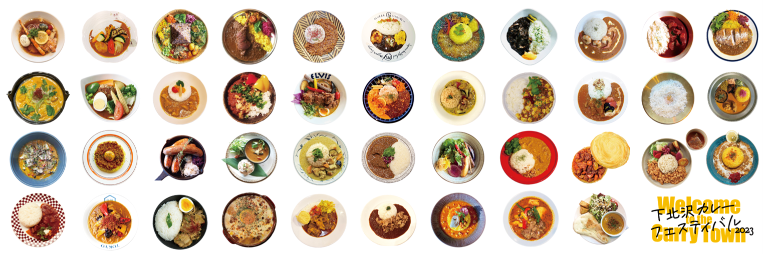 12回目の本年はカレー専門店の他、カフェや居酒屋、BAR、ラーメン店、パン屋などの116店舗が「天ぷらカレーライス」や「ブルーベリードライカレー」「カレークリームソーダ」など、期間中にしか食べられないさまざまなオリジナルカレーメニューを提供し、「カレーの街」下北沢を盛り上げます。さらに“Welcome to the curry town”をテーマに掲げ、英語版のリーフレットを配布することで、下北沢のカレーの魅力を訪日外国人の方々へも伝えます。
