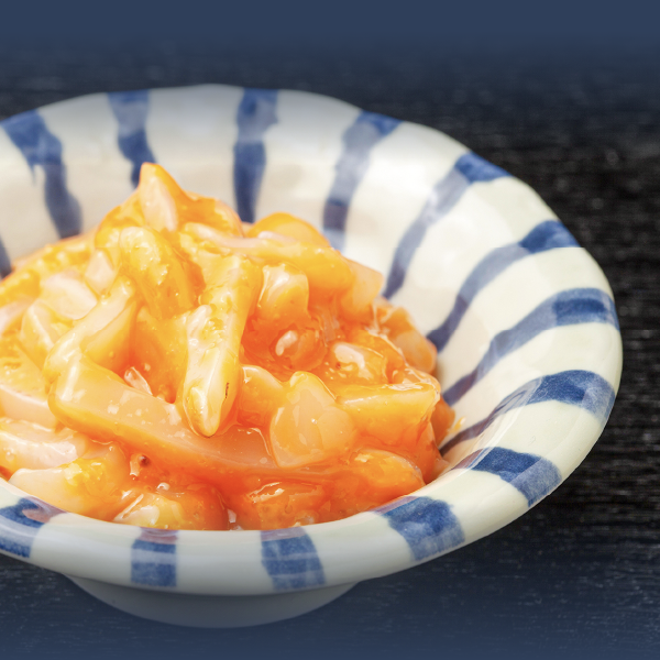 長崎県五島列島の宇久島の磯場で獲れた生うにを塩漬けにして、島近海で獲れたイカと合わせて作りました。プリプリとした歯ごたえのあるイカの身に、濃厚な味わいのウニが絡み合う。酒のアテとして食べるのも、ご飯のおかずに食べるのもよし。何をしても食卓の「主役」になれる贅沢な一品です。