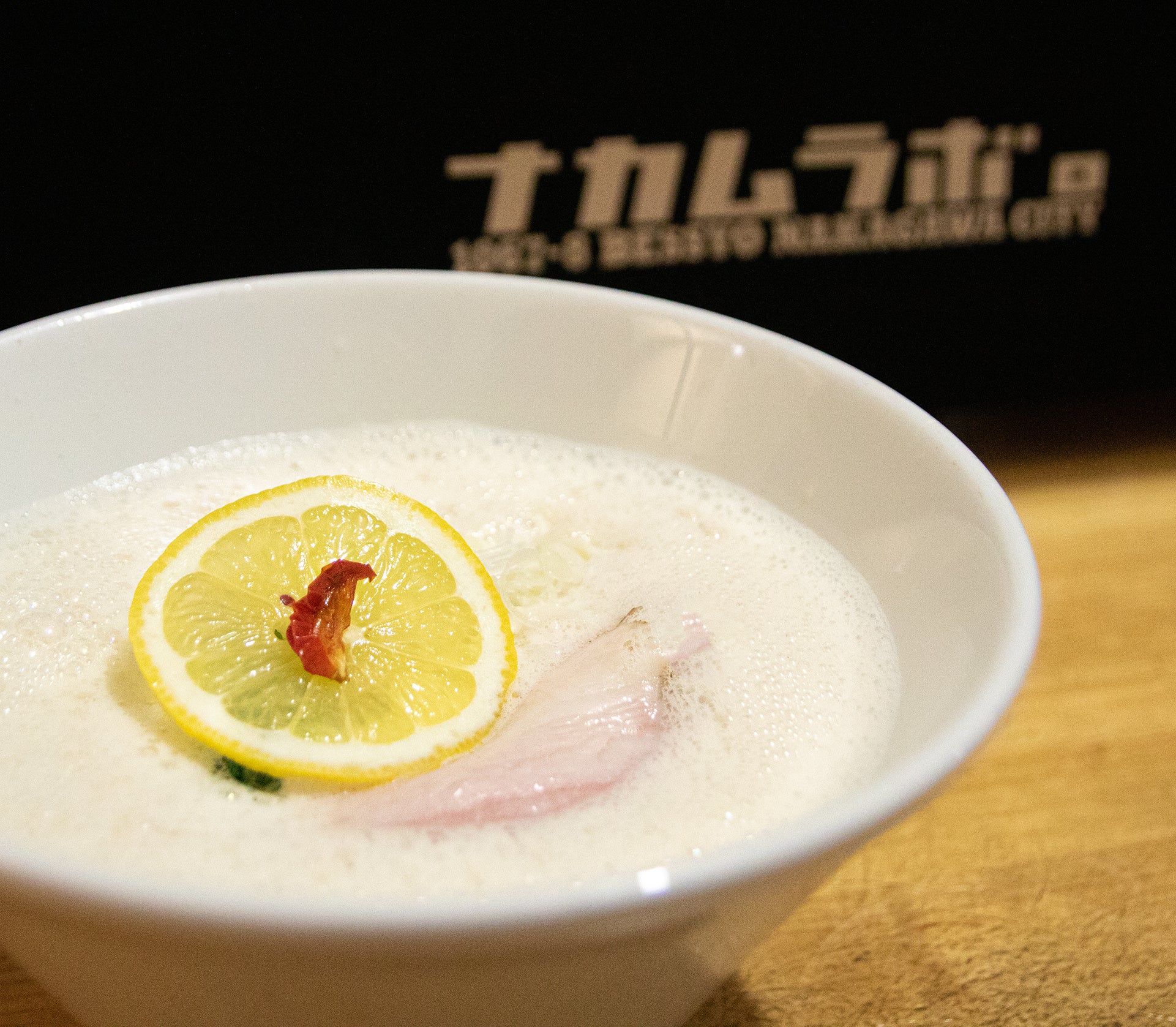 「博多ラーメン」といえば「豚骨」が有名ですが、『御忍び麺処 nakamuLab.』は濃厚な鶏ベースのスープが特長です。一番人気の「鶏白湯SOBA」は泡立てたスープがとてもクリーミーで、コクのある仕上がりとなっています。添えられたレモンを加えれば、コクがありながらもさっぱりした味わいとなります。今年春には東京・四ツ谷にも進出を果たしています。