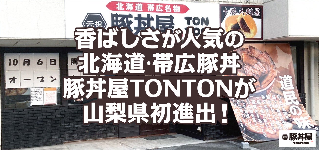 ワンズトライン株式会社(本社:大阪市北区芝田2丁目3番16号、代表取締役:山内仁)は、山梨県甲府市に山梨県初出店となる「元祖豚丼屋TONTON 甲府中小河原店」(住所:山梨県甲府市中小河原町673、TEL:055-225-4448)を、’23年10月6日(金)オープンいたします。