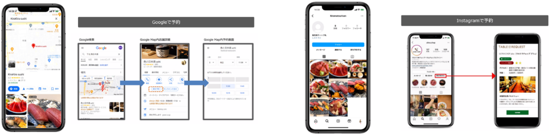 Google、Instagramに「席予約ボタン」を設置し、予約経路を拡充できます。