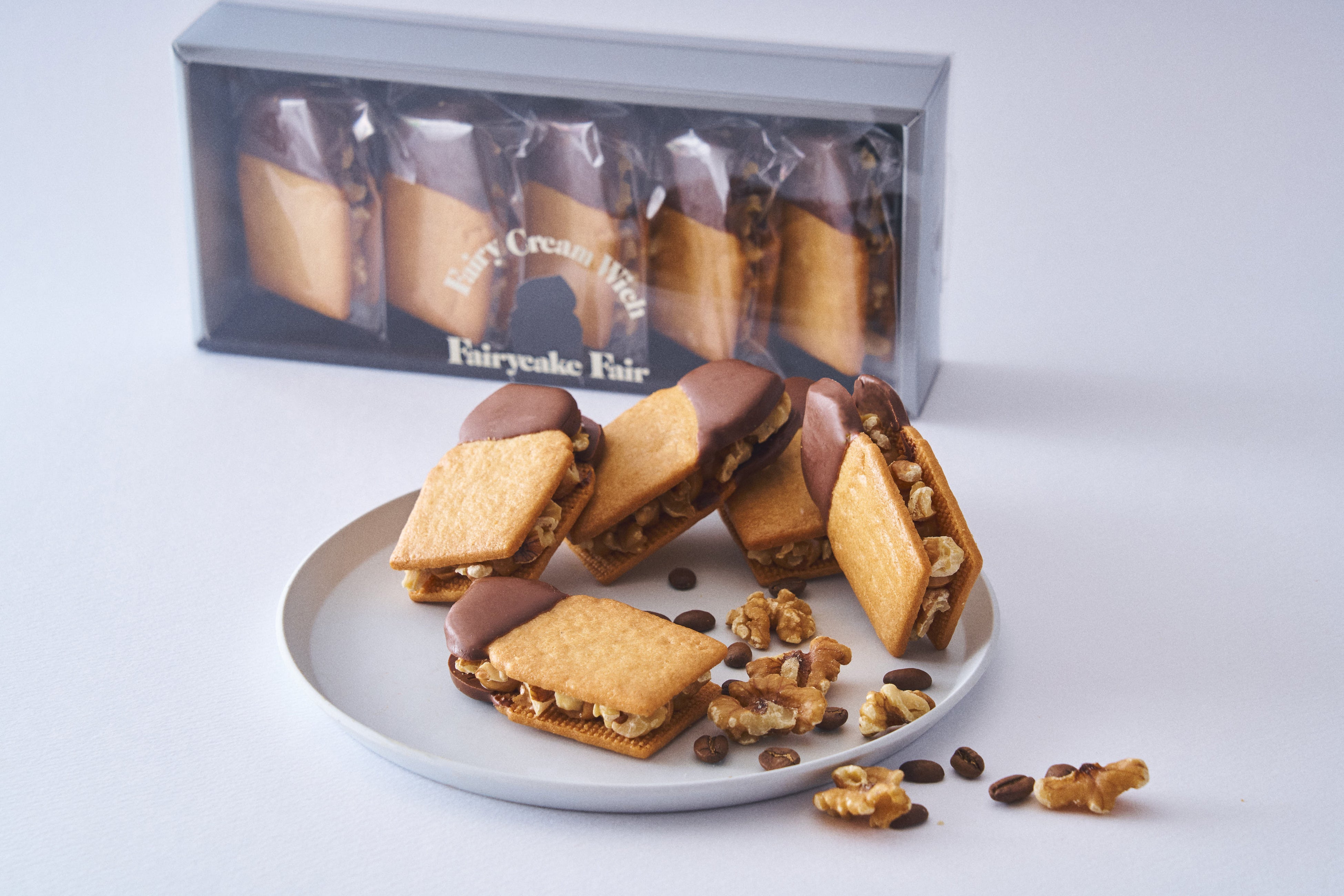 人気の生バターサンドシリーズでは「フェアリークリームウィッチ カフェノワキャラメル生バターサンド」が新登場。ローストしたクルミの香ばしい食感とともにキャラメルの甘さとコーヒーのほろ苦さのコントラストが味わえる、秋仕立ての新作お菓子を販売開始いたします。