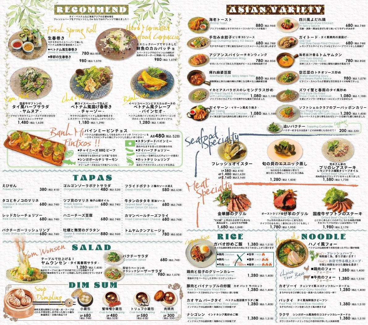 タイ・ベトナム・シンガポールなどのアジア各国の本格エスニックを中心に小皿料理から多彩なグリル料理までをビールやワインに合わせ「カジュアルに」楽しめる“アジアンビストロ”ご友人やご家族と、女子会や記念日など様々なシーンでお楽しみいただけます!