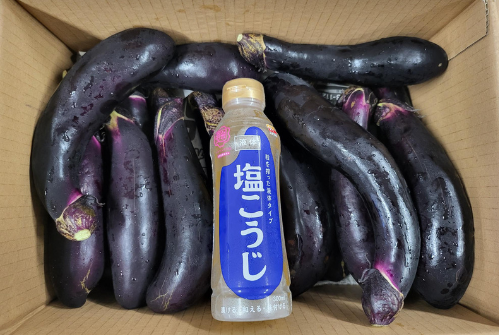 “液体塩こうじ+規格外のなす“で食品ロス対策
