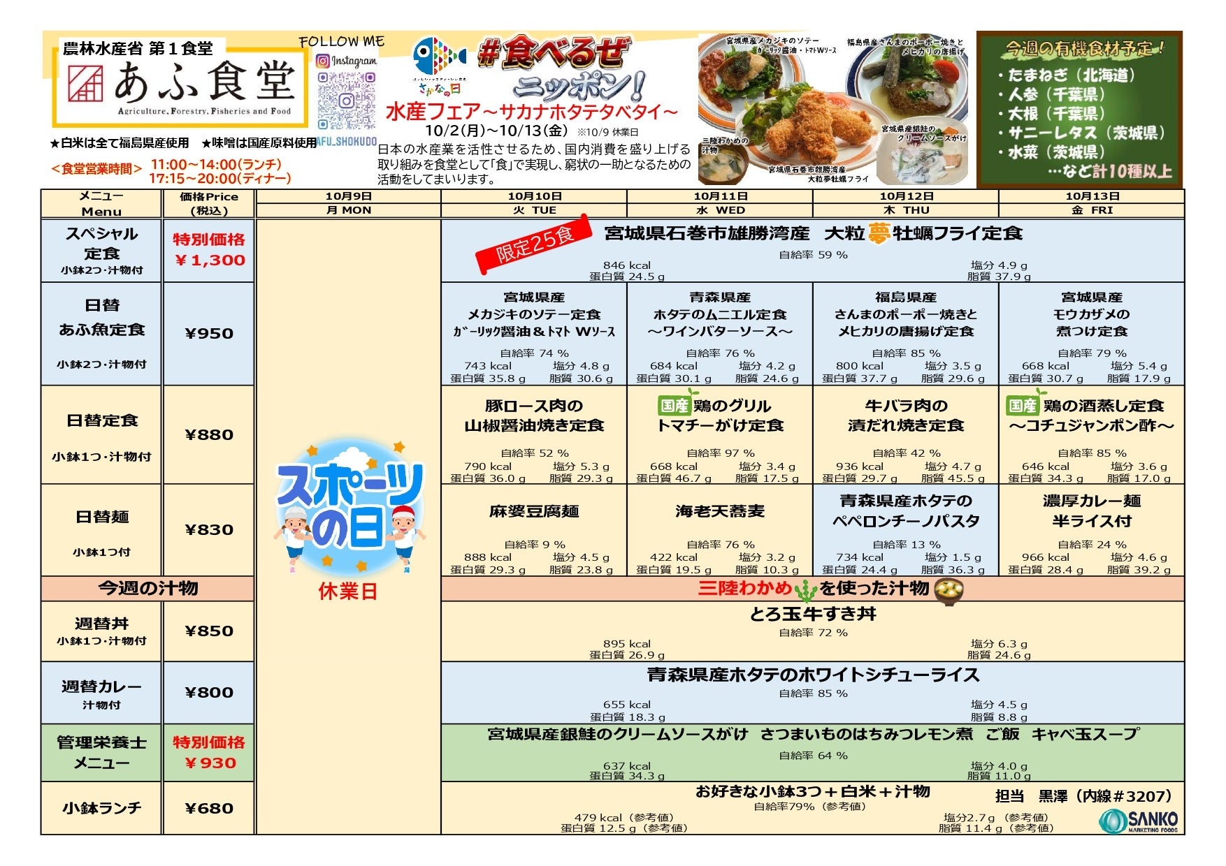 『食べるぜニッポン!水産フェア~サカナホタテタベタイ~』期間中のあふ食堂メニュー