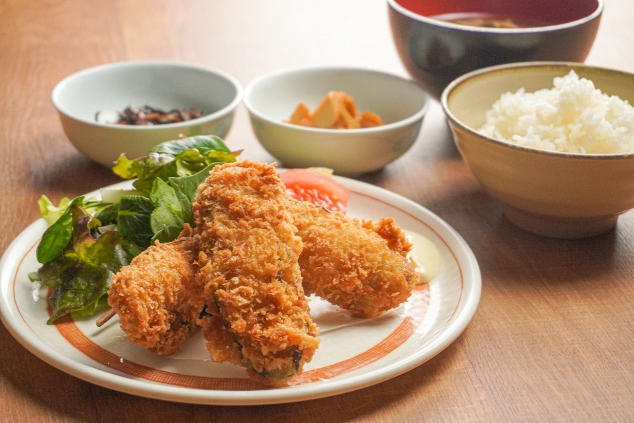 ■宮城県石巻市雄勝湾産 大粒夢牡蠣フライ定食 1,300円(税込み)