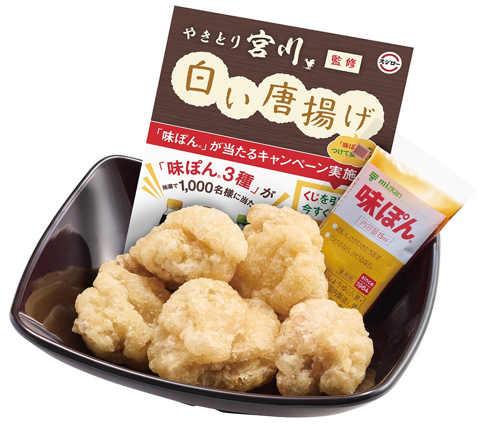今回監修いただいた「やきとり宮川の白い唐揚げ」も、シンプルに塩味で仕立て、店内で揚げることでサクサク食感をお楽しみいただけます。肉の旨みやジューシーさを味わえるそのままの塩味もよし、相性の良い付属のミツカン「味ぽん」でさっぱりと味わうのもよし、その日の気分やお好みに合わせて味変していただけます。