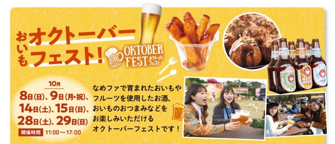 10月、らぽっぽ なめがたファーマーズヴィレッジの校庭にて、なめファで育てたおいもやフルーツを使用したお酒や、おいものおつまみを楽しんで頂けるなめファならではの「おいもオクトーバーフェスト」を開催いたします。