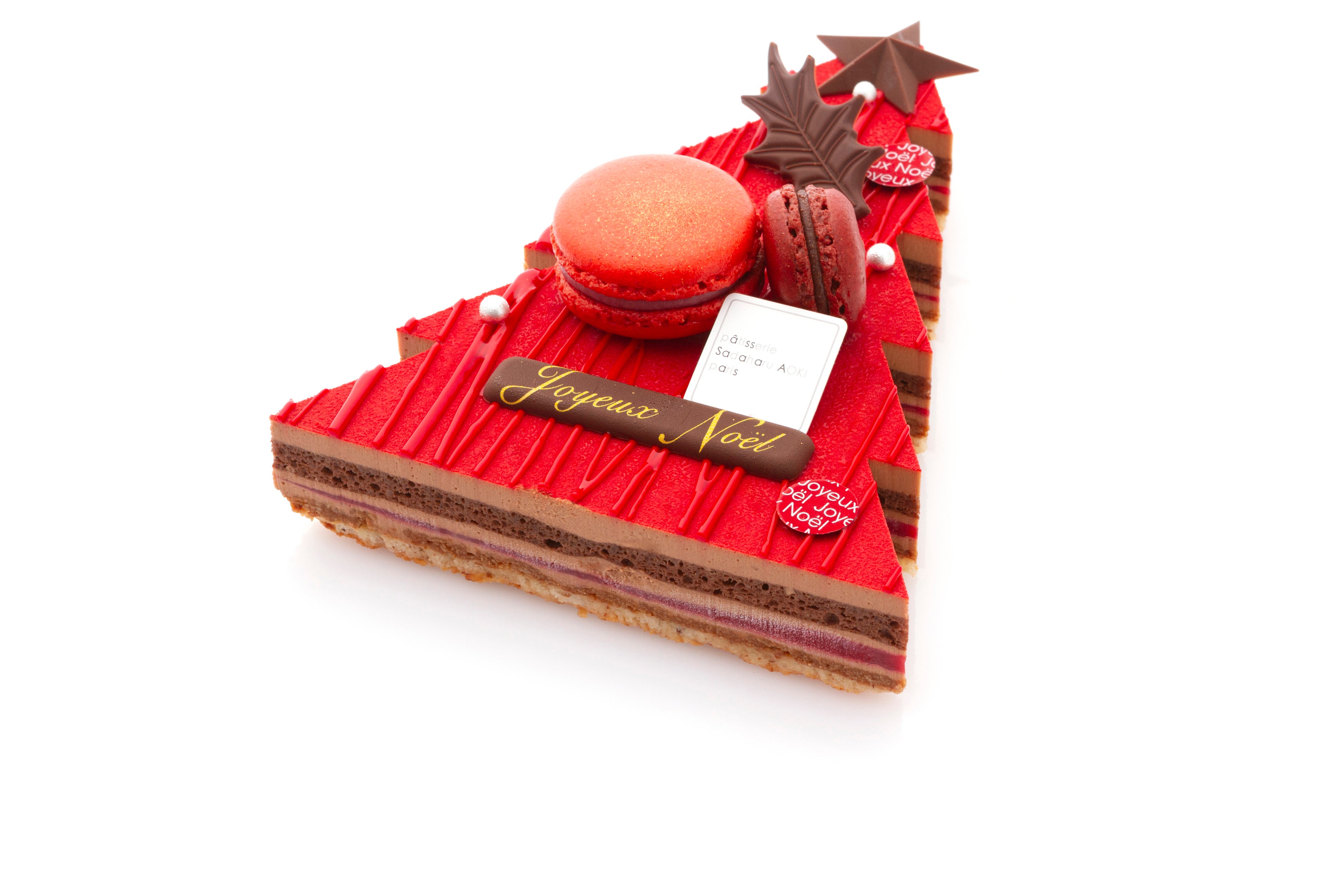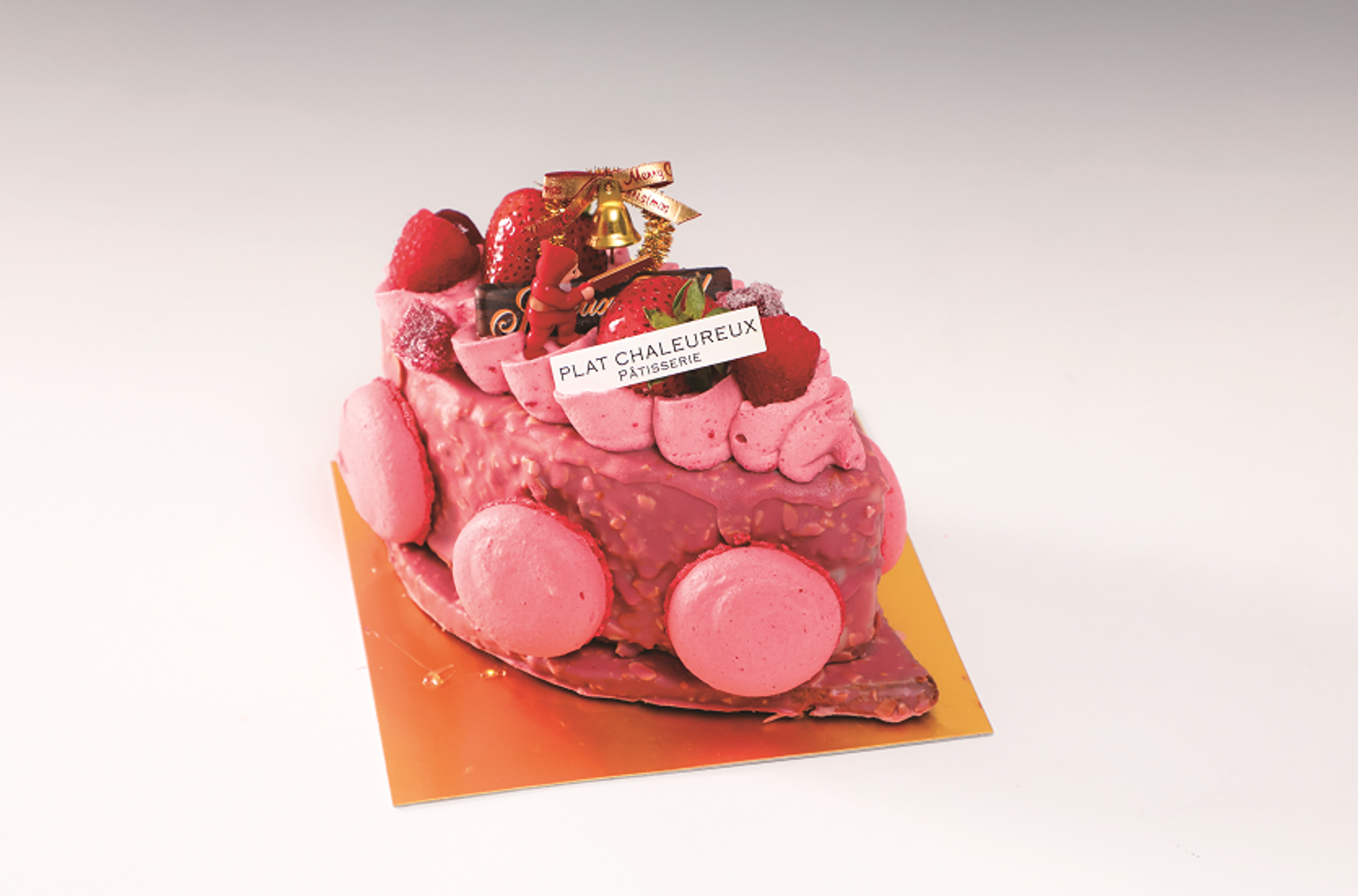 なめらかなミルクチョコレートのクリームの甘い口どけと、さわやかなフランボワーズジュレが溶け合う「官能的」な味わいの色鮮やかなケーキです。