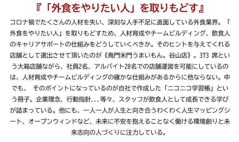 戦争を始め、過去に類を⾒ない円安、原材料費高騰、エネルギー資源の価格⾼騰、飲⾷店離れによる⼈材難、各都道府県、市町村でリアルに起きている地域格差。