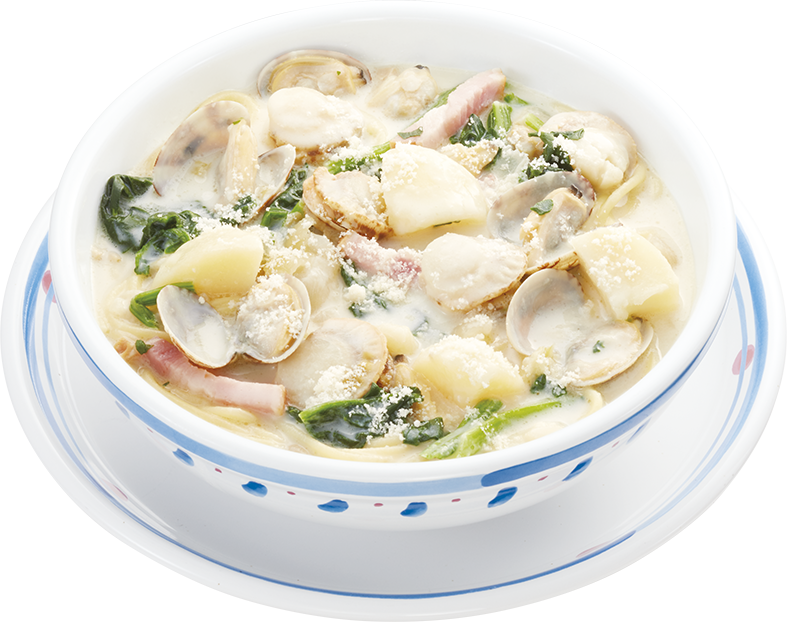帆立とあさりのチャウダースープパスタ