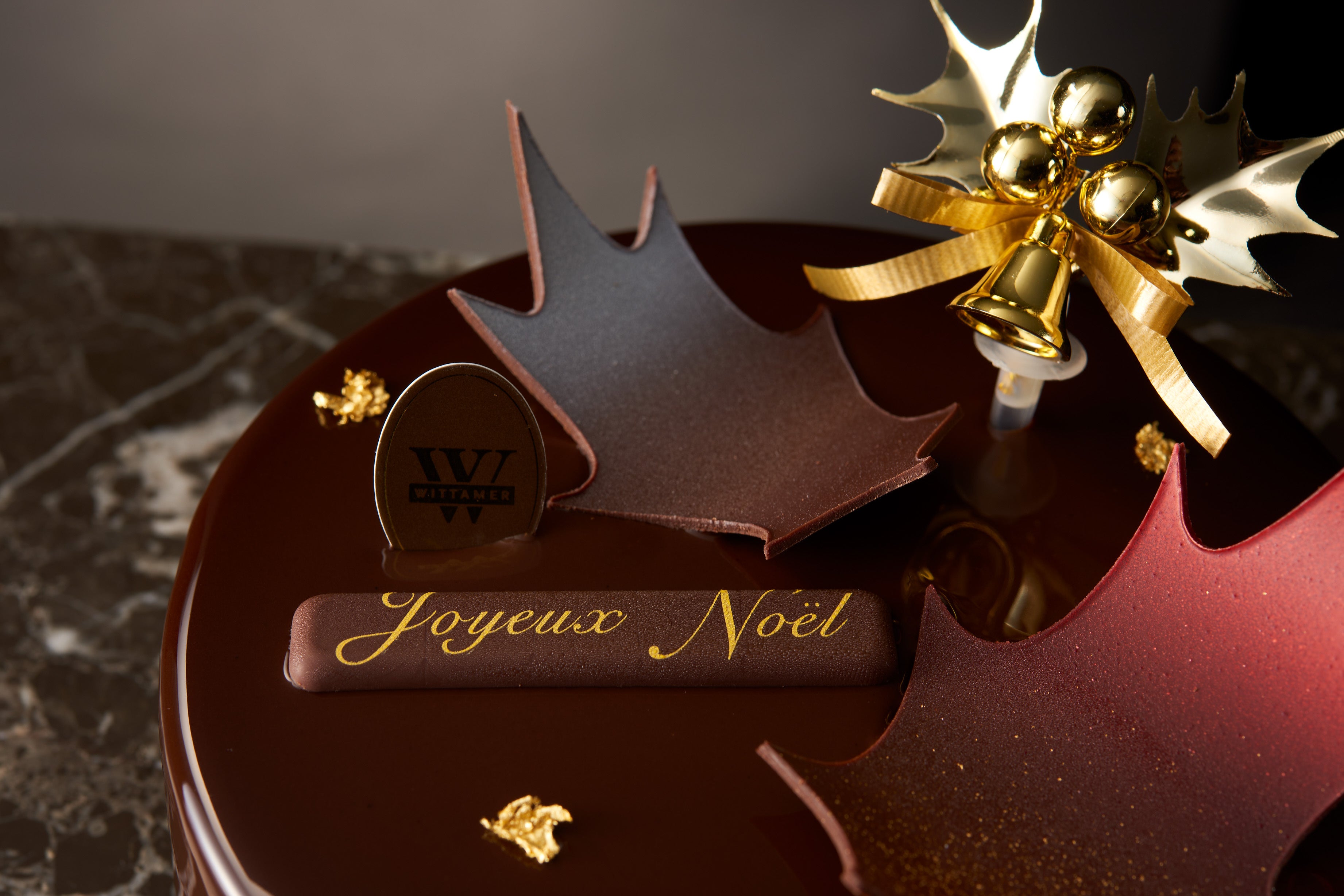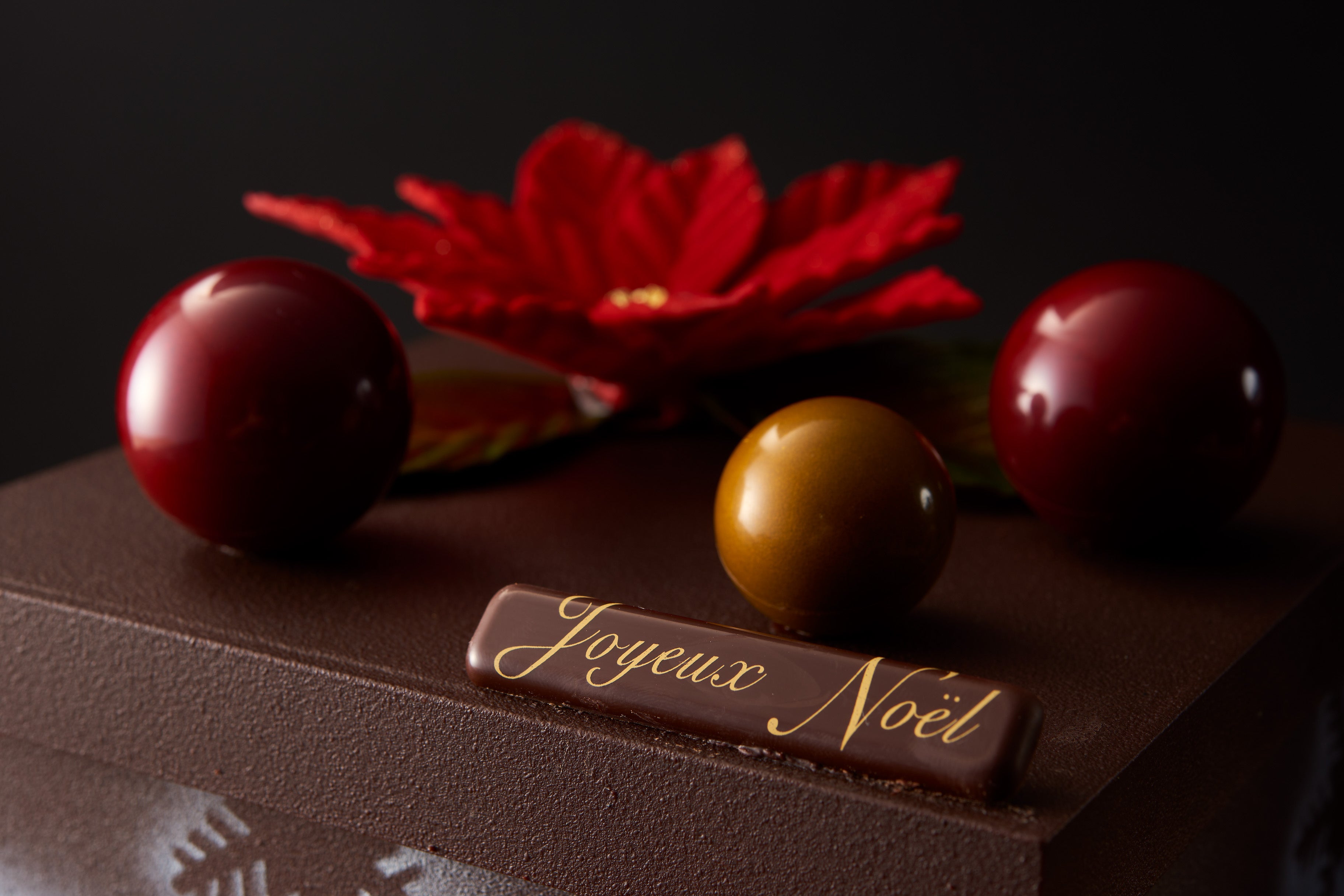 プレゼントを開けるときのようなワクワク感をケーキでも。そんな想いで、ショコラティエがひとつひとつ手作りした真っ赤なポインセチアが印象的なチョコレートのボックス。