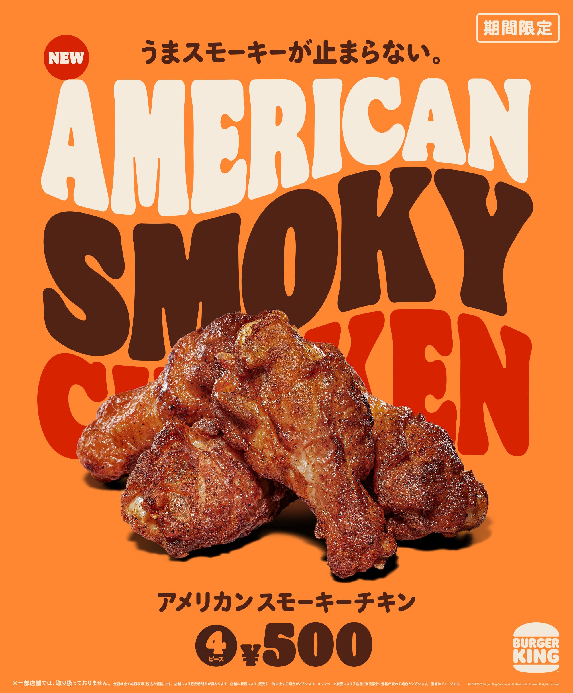 スモーキーな香りと7種類のスパイスが食欲をかき立てる! 本格的な味わいに手が止まらないアメリカンなおいしさ 『アメリカン スモーキーチキン』期間限定で新発売 |