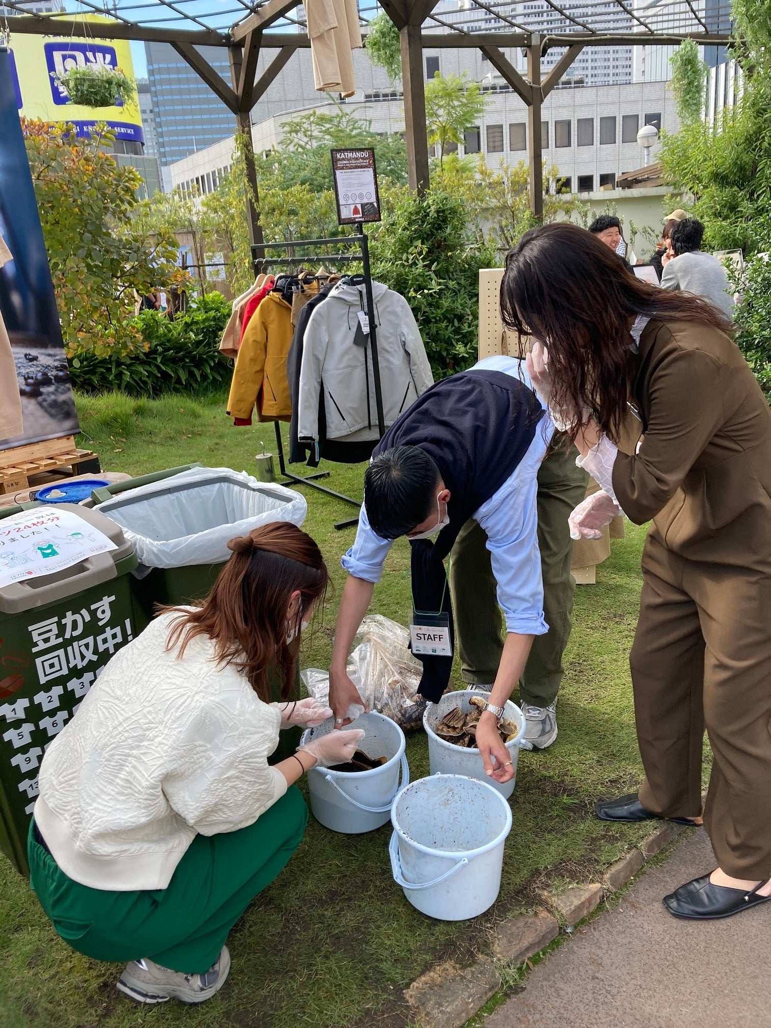 このイベントは、出店ショップのコーヒー豆かすを収集しアップサイクルさせる循環型サステナブルイベントです。実際にコーヒー豆かすを集めている様子をお客さまにも見ていただき、コーヒーを通し環境問題を考えるきっかけづくりに。他にも、植物性由来のリユースタンブラーを使用し、紙コップのごみを削減するなど、環境にやさしいコーヒーイベントです。