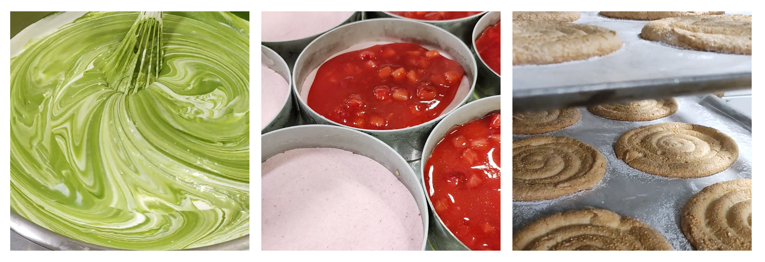 そして、トップにデコレーションしている抹茶の生クリームには石臼挽きの宇治抹茶「千代の白」と「松の齢」の2種の抹茶を使用し、パティシエが丁寧に泡立てたものを絞りました。京はやしやで通常販売しているスイーツで使用している抹茶生クリームとはまた異なる、抹茶ノエルのためだけのオリジナル生クリームを作りました。