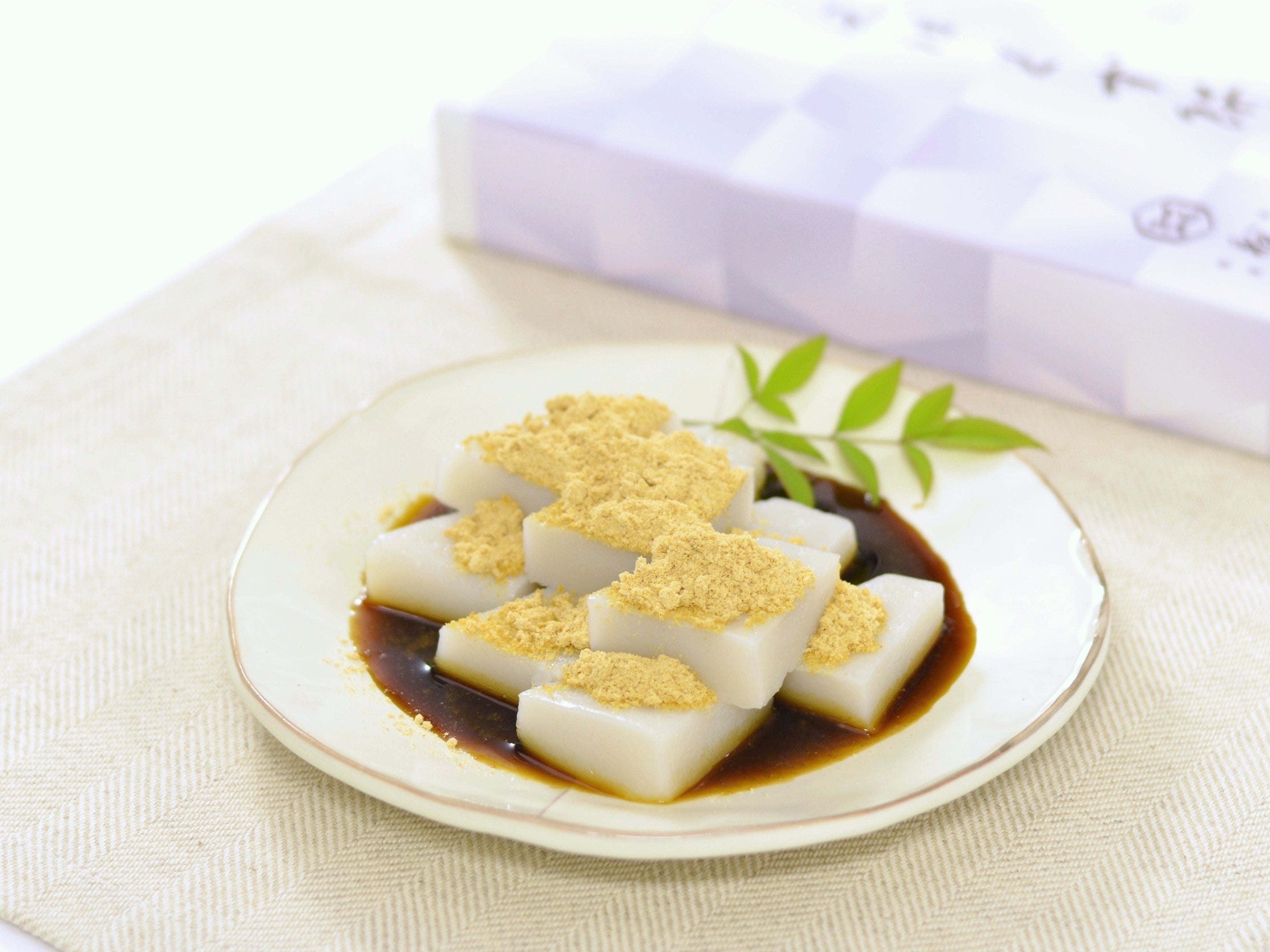 船橋屋のくず餅の製造工程はおよそ450日。刹那の口福のためにかけられたこの時間を218年経った今も大切にし、出来立てを自然のまま無添加発酵製法でお召し上がり頂くために、消費期限はわずか2日間の逸品となります。