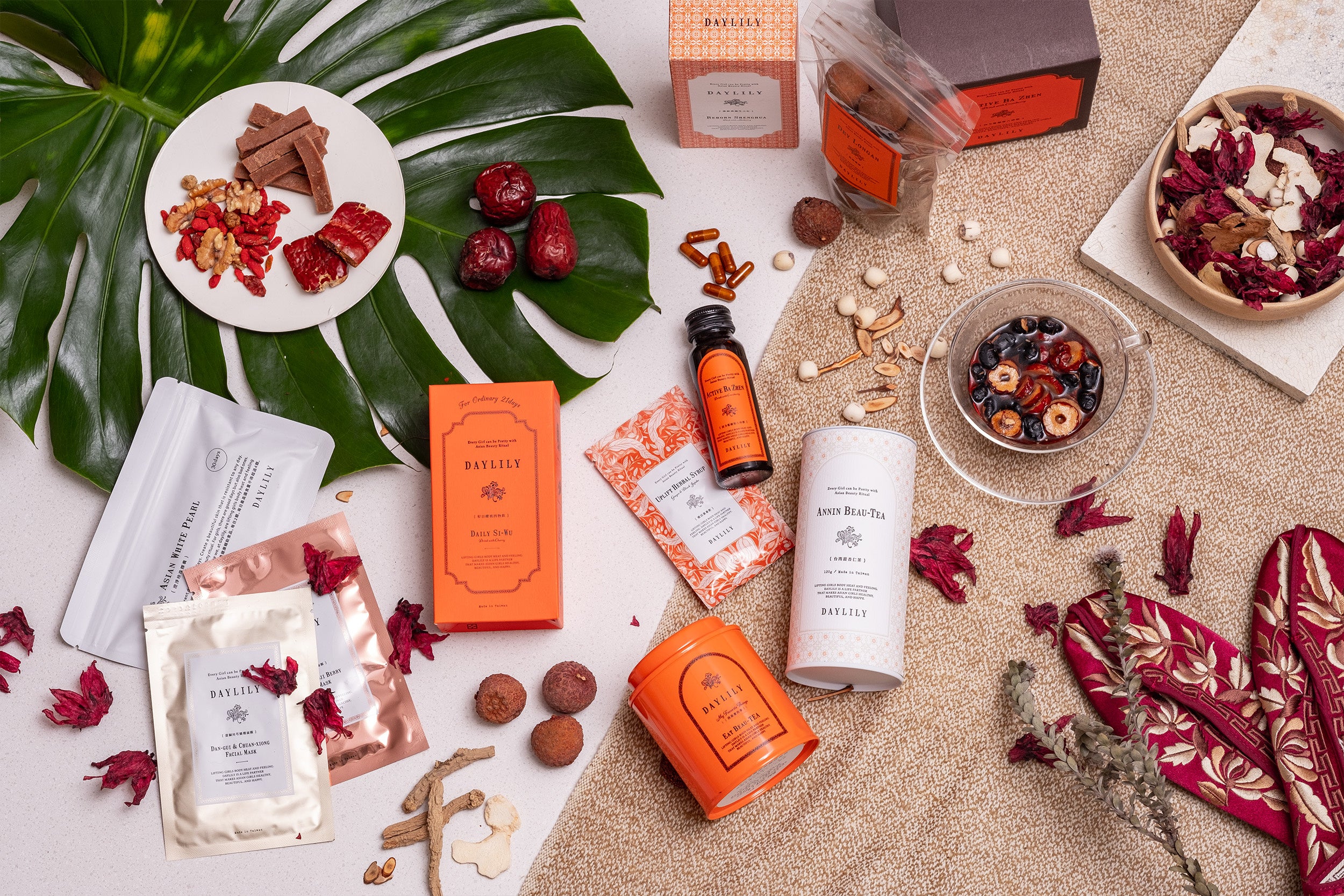 今回のコラボレーション先である、台湾発の漢方ライフスタイルブランド「DAYLILY」は、漢方をライフスタイルに取り入れ、女性がより充実し輝ける日々を送ってもらいたいと、2017年にクラウドファンディングにて費用を調達し、1号店を出店しました。数多くの和漢茶を始め、コスメや雑貨まで多岐に渡り販売しています。これまでの漢方のイメージを覆す、洗礼されたデザインと普段の生活に取り入れやすい手軽さで漢方業界に新しい風を巻き起こしています。