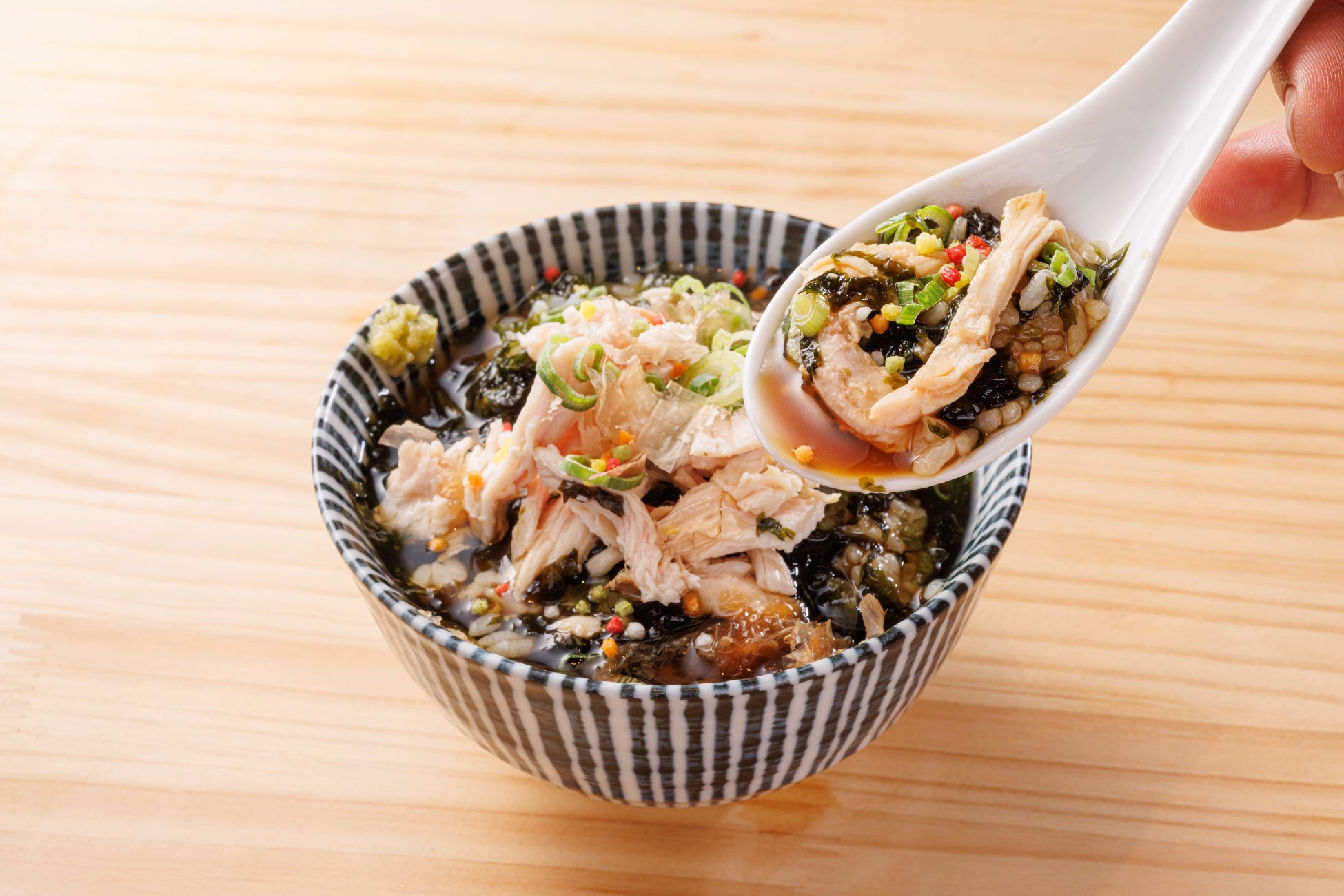 ダシを最後までお楽しみいただけるために、柔らかく仕上げた蒸し鶏をのせた鶏茶漬け