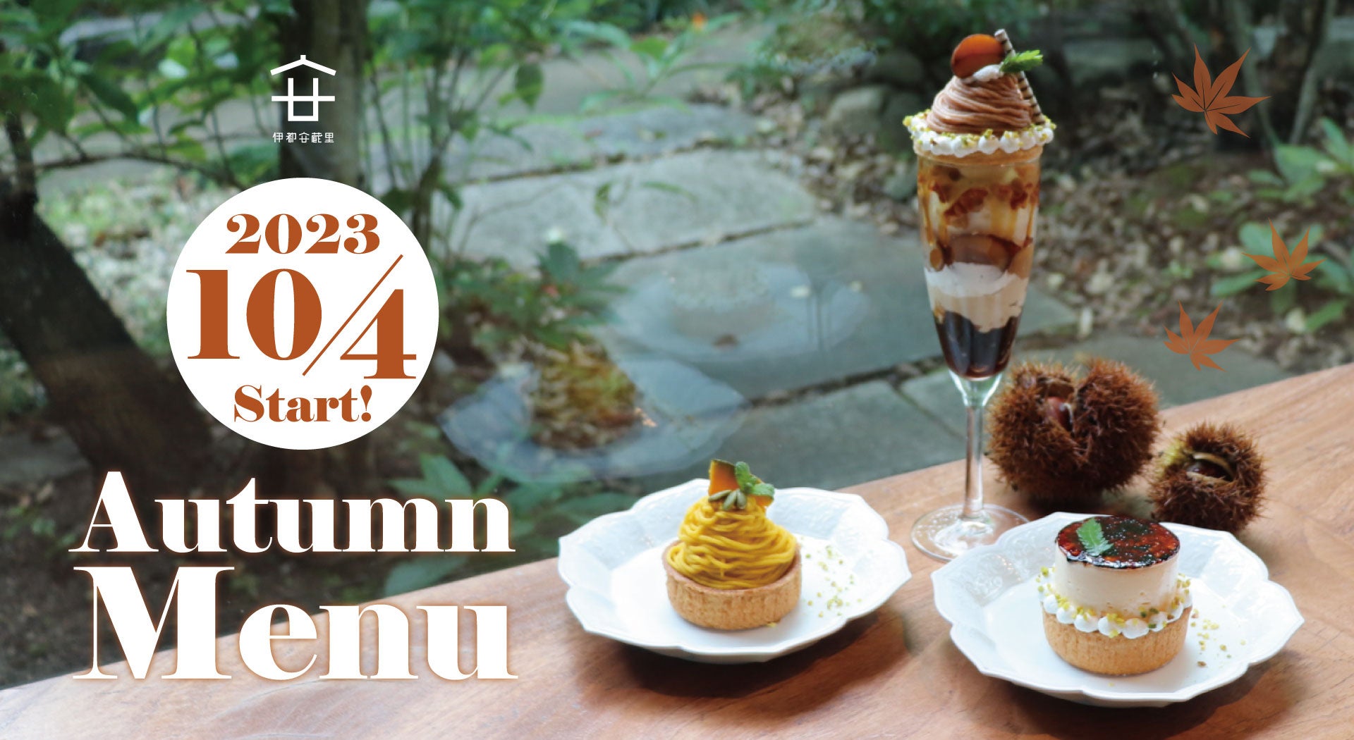 秋の新作スイーツはアップルシブースト以外にも、かぼちゃのタルト(左)とモンブランパフェ(中央)もご用意しています!