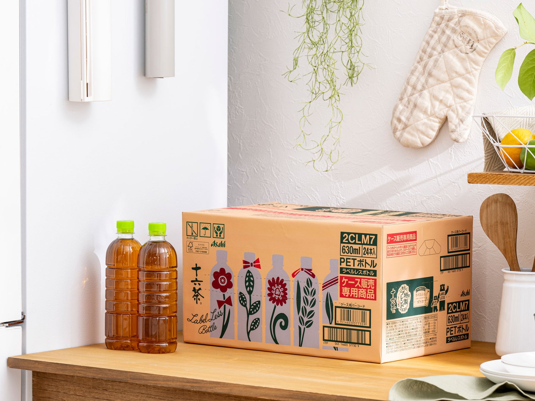 からだにやさしい十六素材と環境にやさしいラベルレスを表現した「リボン」がコンセプトの限定デザインです。オシャレでかわいいので、キッチンやリビングにそのままストックしても、目立つことなく空間に自然に溶け込んでくれます。