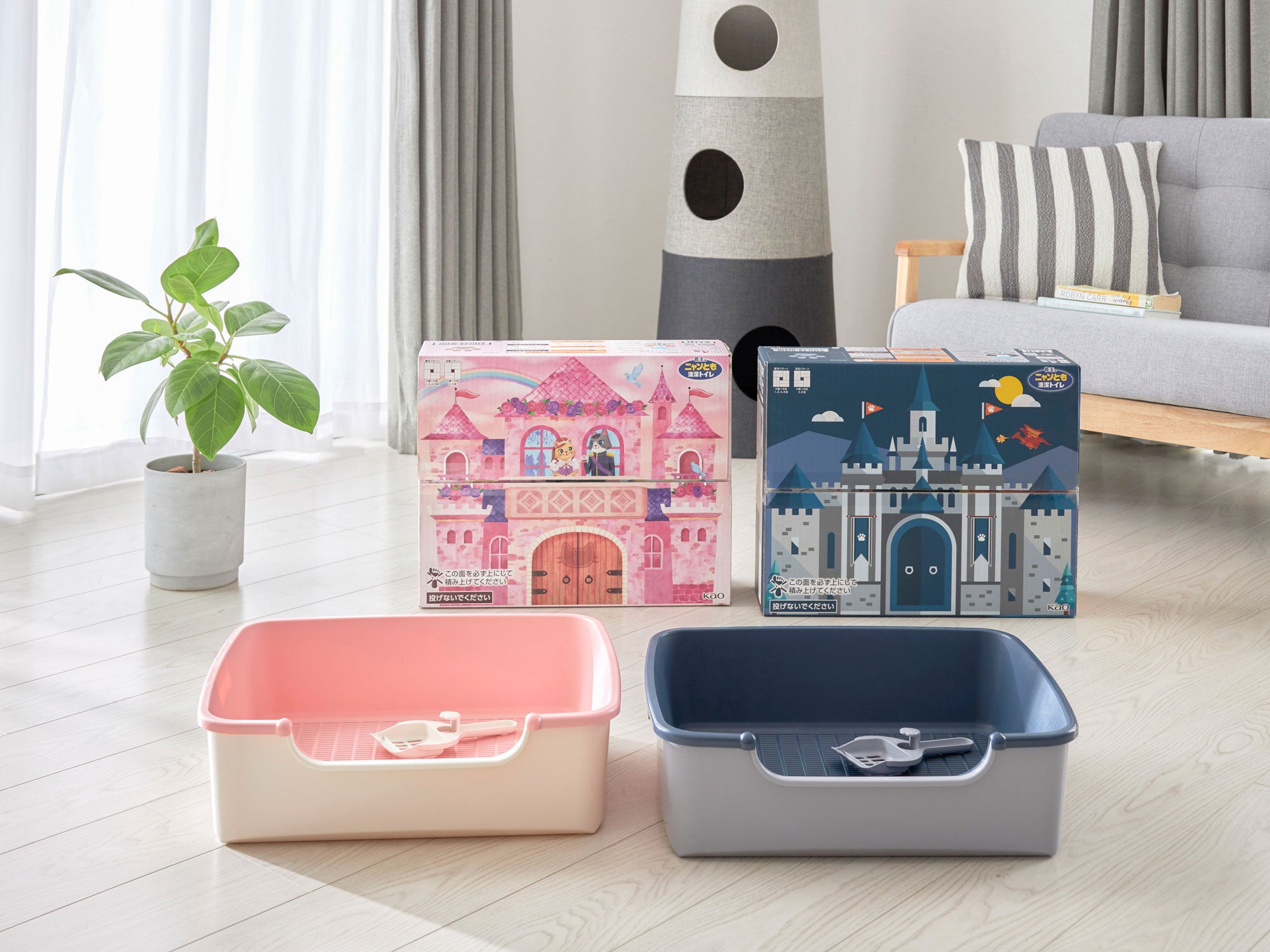 引き出しのないシンプルタイプの猫ちゃん用トイレは、省スペースで置き場所を選ばずケージの中でもスッキリ。落ち着いた限定カラー「プリンセスピンク&アイボリー」「ナイトブルー&グレー」は、インテリアやリビングにも溶け込みます。