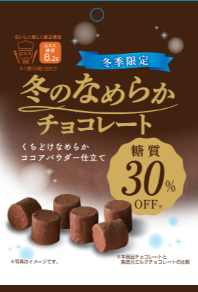 生チョコのようなやわらかなくちどけはそのままに、糖質を30%オフ(※1)した低糖質のチョコレートです。ココアパウダーで仕上げたメルティタイプなので、ココアのほろ苦さとチョコレートの濃厚な味わいを楽しむことができます。