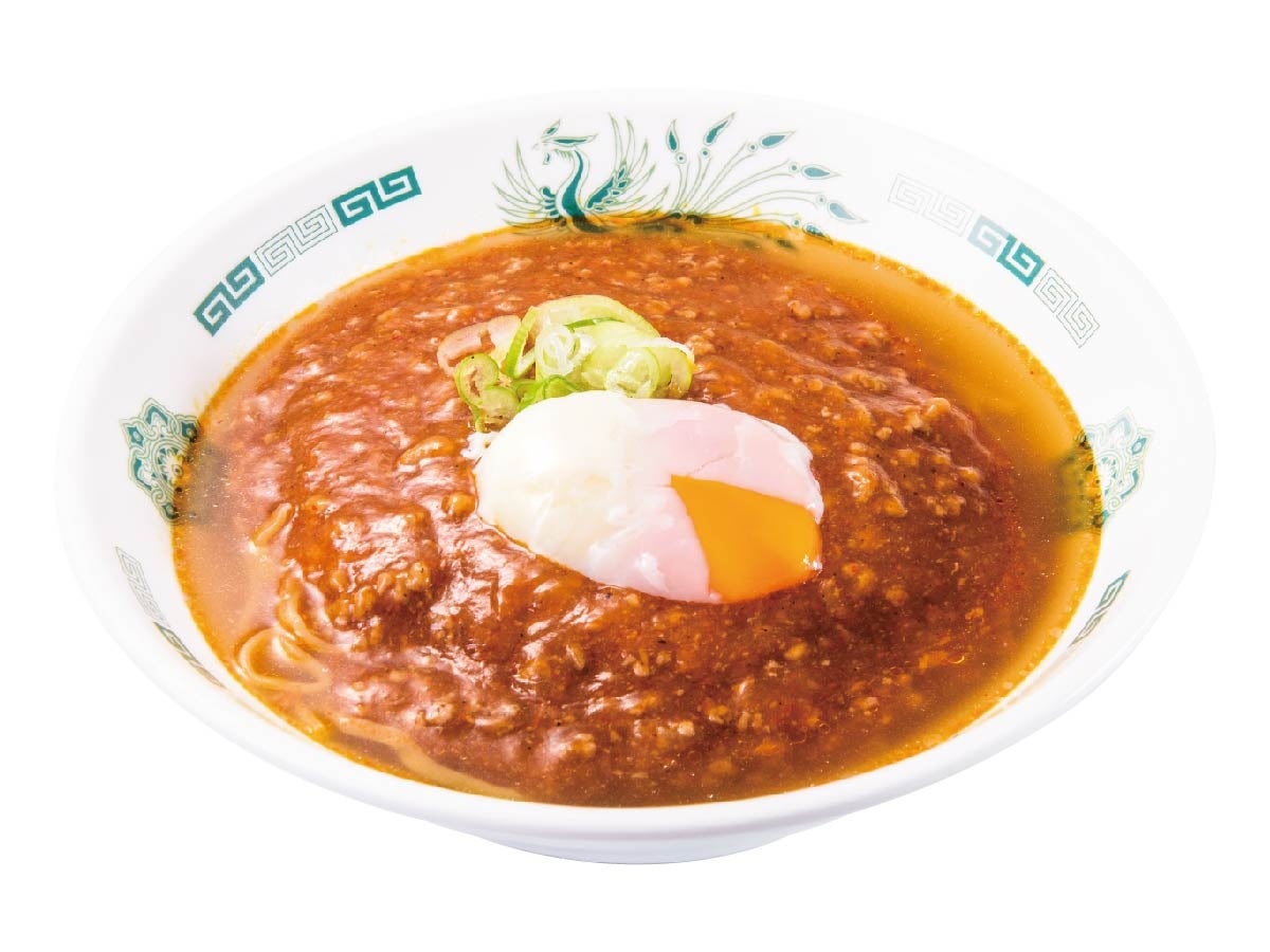 2016年2月のグランドメニュー改定をもって販売を終了した「温玉旨辛ラーメン」は、豚挽肉の旨味とピリっと辛いあんかけがクセになる、醤油ベースのラーメンです。別皿提供の温泉玉子は、最初に落としても良し、途中で味変として落としても良し。まろやかさが加わり、普段、辛いものが苦手なお客様にもおいしく召し上がっていただけます。