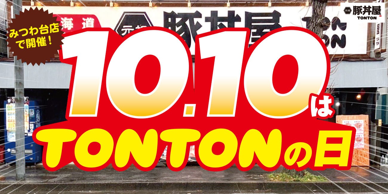 ワンズトライン株式会社(本社:大阪市北区芝田2丁目3番16号、代表取締役:山内仁)が運営する、北海道・帯広伝統の豚丼が人気の「元祖豚丼屋TONTON みつわ台店」(住所:千葉県千葉市若葉区みつわ台2-10-14、TEL:043-301-2320)で、’23年10月10日(火)「TONTONの日」にスペシャルイベントを開催いたします。年に一度のスペシャルイベント!皆さまのご来店を心よりお待ちしております。