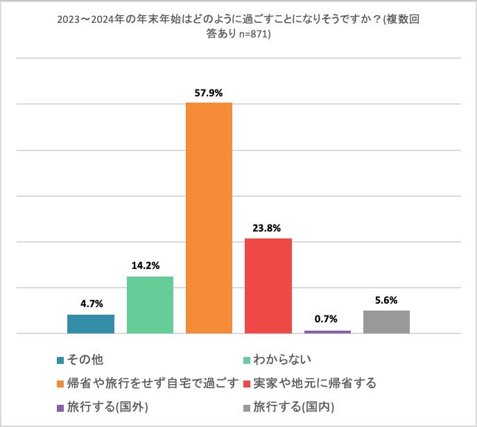 〇2023~2024年の年末年始を「自宅で過ごす」と57.9%の人が回答。