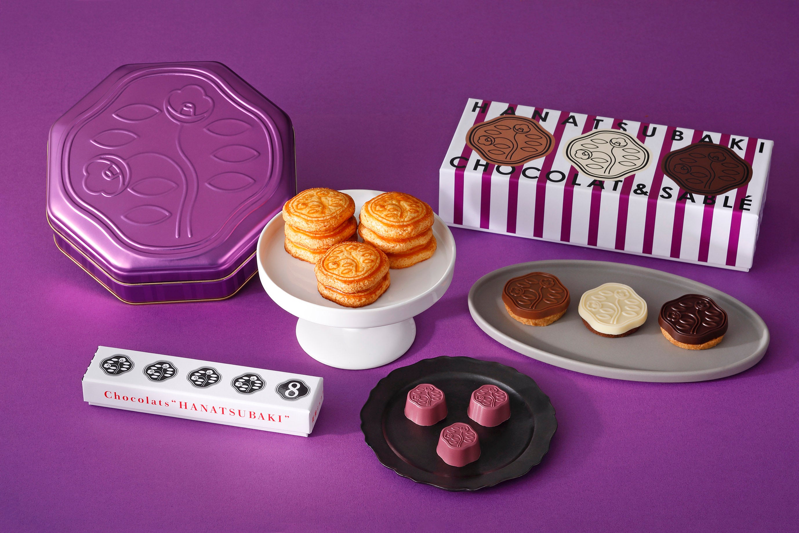 『花椿ビスケット限定缶 クリスタルパープル』と『花椿ショコラ キャラメル/プルーン』も同日発売