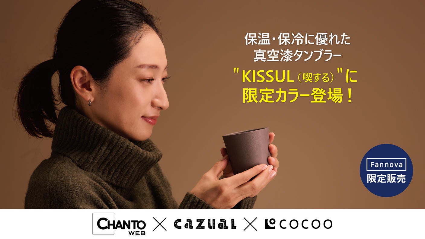 日本が誇るモノづくりの技術を融合させ、心地よさを探究する「COCOO(こくう)」より、京都の老舗漆屋と共同開発した新技術を搭載した、丈夫で天然の抗菌性に優れ、普段使いしやすい “真空漆”タンブラー「KISSUL(キッスル)」の新色を限定販売! 人気ウェブメディア(CHANTO・cazual)のコラボ商品。