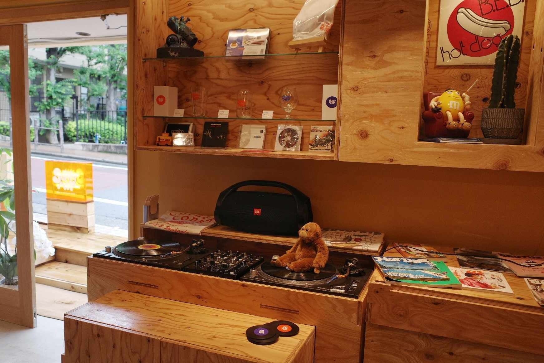 店内には、スタッフや常連さんが持ち寄ったレコードを集めたDJブースもあり、週末には美味しいお酒といい音楽で、ゆるっとパーティが始まることも。