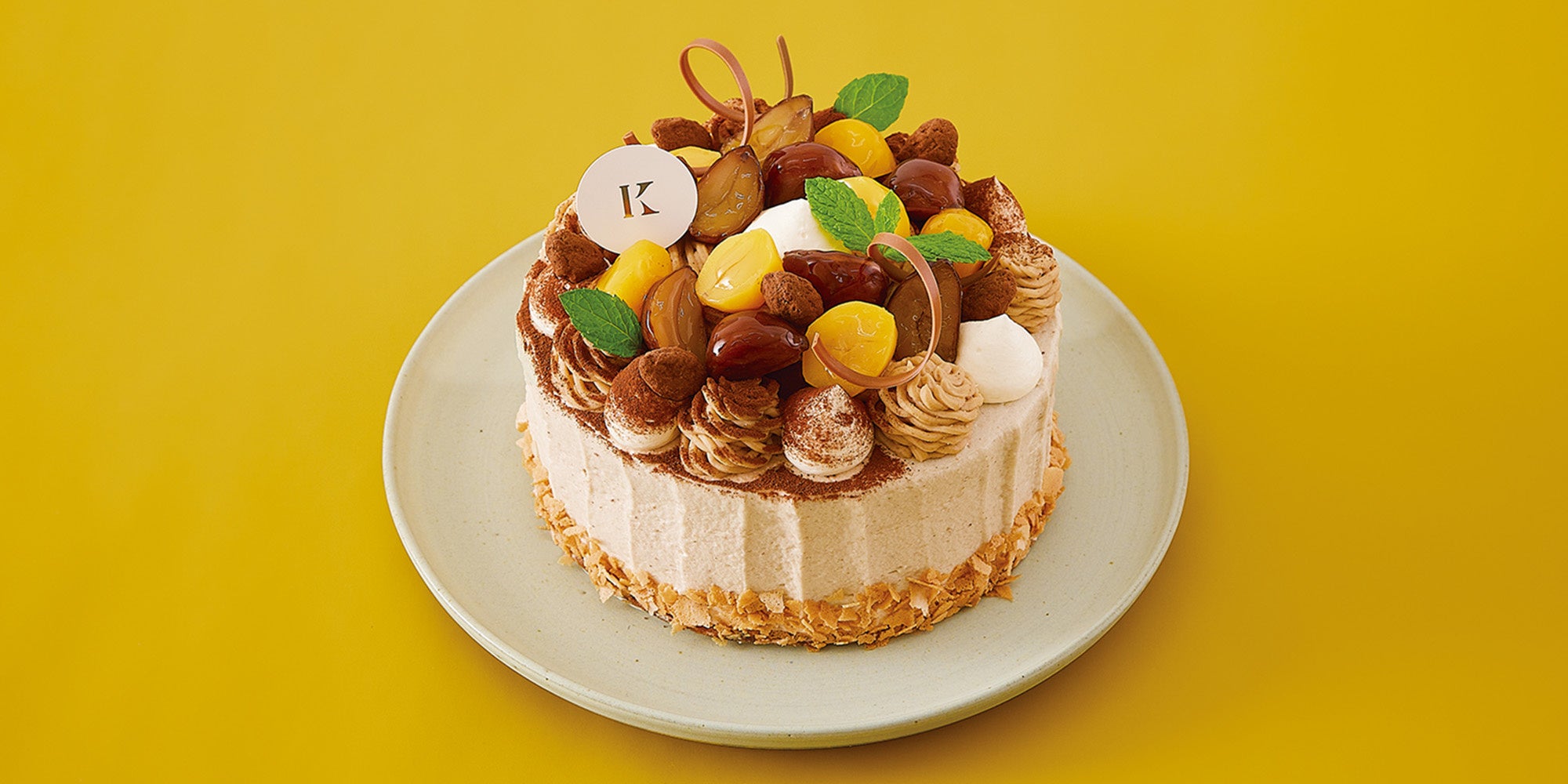 生クリームを加えてまろやかに仕上げた風味豊かな特製マロンクリームで表面を仕上げ、2種類の栗と生クリームやマロンペーストで飾った、栗いっぱいのデコレーションケーキです。