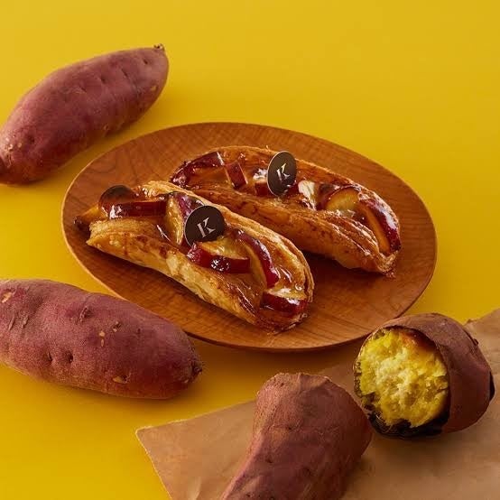 2度焼したサクサクのパイに、さつまいものペーストとカスタードクリームを合わせたフィリングを詰め、甘く煮たさつまいもをのせた秋限定の味わい。