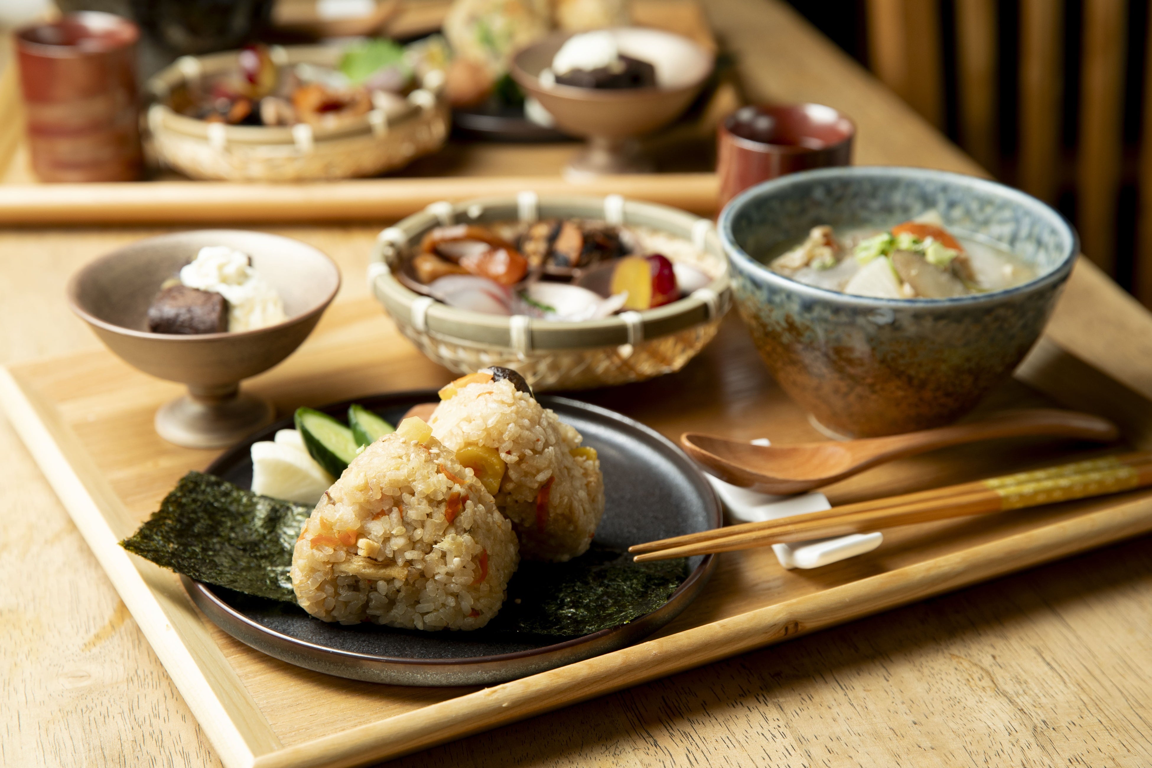 -秋の味覚- 芋と栗おにぎり豚汁セット〜4種のおかずを添えて〜